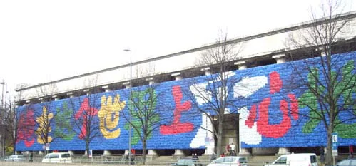 Ai Weiwei: 'Remembering', Installation of backpacks for the facade of the Haus der Kunst, Munich 2009 (c) photo by Premier Art Scene